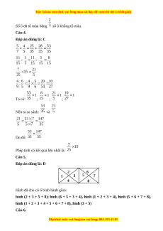 Số ô đã tô màu bằng số ô không tô màu. Câu 4. Đáp án đúng là: C Ta có: ; ; ; Nên ta so sánh: và Do đó: