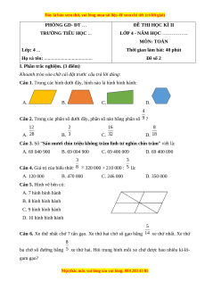 LỚP 4 - NĂM HỌC ……………. MÔN: TOÁN Lớp: 4 ...