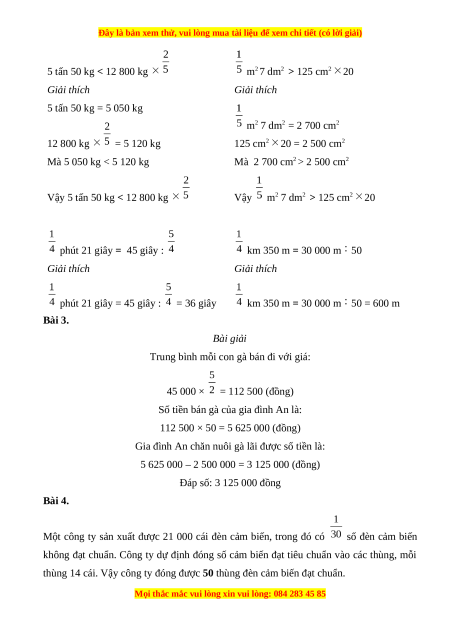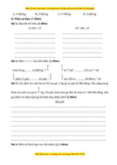 Bài 3. Gia đình An vừa bán đi 50 con gà. 1 kg gà có giá 45 000 đồng. Cân nặng trung