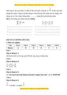 I. Phần trắc nghiệm. Câu Câu 1 Câu 2 Câu 3 Câu 4 Câu 5 Câu 6 Đáp án A D B B C A Câu 1. Đáp án đúng là: A