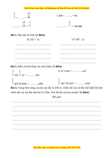 Bài 3. Điền số thích hợp vào chỗ chấm. (1 điểm) 15 m2 8 dm2 = ………..cm2 tấn tạ = ………..yến