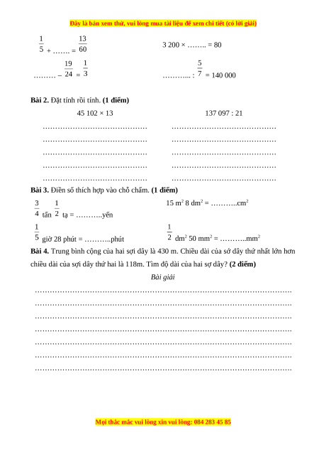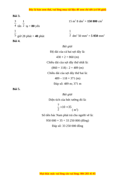 Bài 4. Trung bình cộng của hai sợi dây là 430 m. Chiều dài của sớ dây thứ nhất lớn hơn