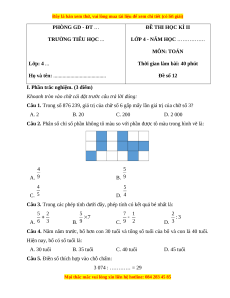 LỚP 4 - NĂM HỌC ……………. MÔN: TOÁN Lớp: 4 ...