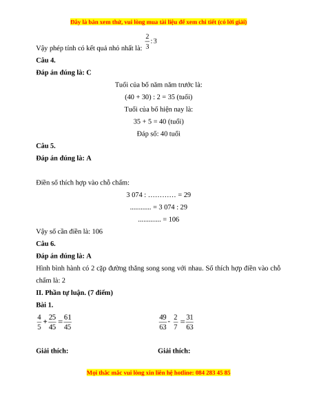 Câu 5. Điền số thích hợp vào chỗ chấm: 3 074 : ………… = 29