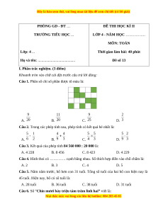 LỚP 4 - NĂM HỌC ……………. MÔN: TOÁN Lớp: 4 ...