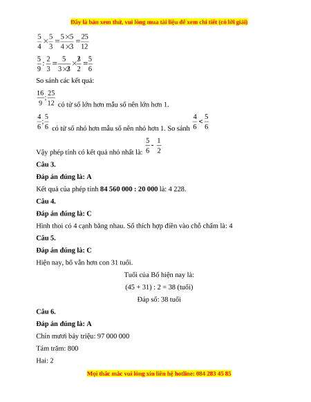 Câu 3. Kết quả của phép tính 84 560 000 : 20 000 là: A. 4 228 B. 8 456 C. 8 423 D. 4 229