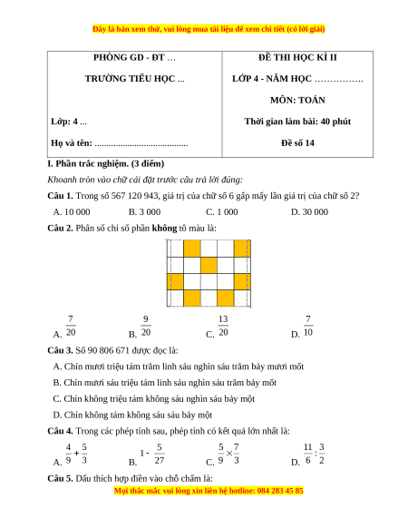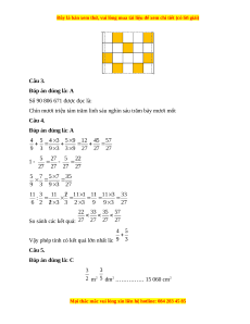 I. Phần trắc nghiệm. (3 điểm) Câu 1 Câu 2 Câu 3 Câu 4 Câu 5 Câu 6 B C A A C B Câu 1. Đáp án đúng là: B Trong số 567 120 943: