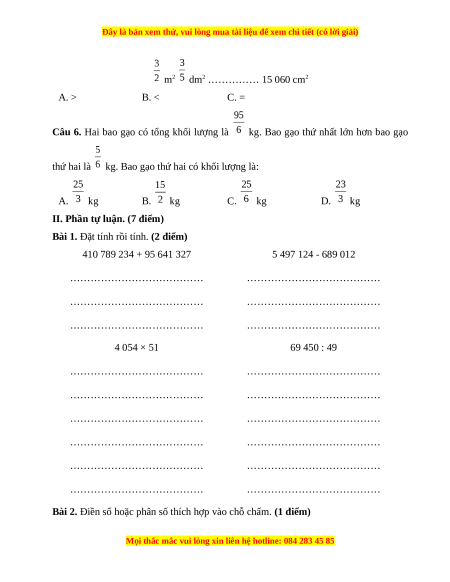 60 000 000 : 20 000 = 3 000 (lần) Câu 2. Đáp án đúng là: C