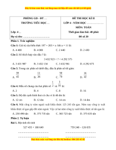Họ và tên: ........................................ Đề số 20
