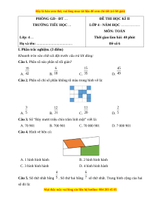 LỚP 4 - NĂM HỌC ……………. MÔN: TOÁN Lớp: 4 ...