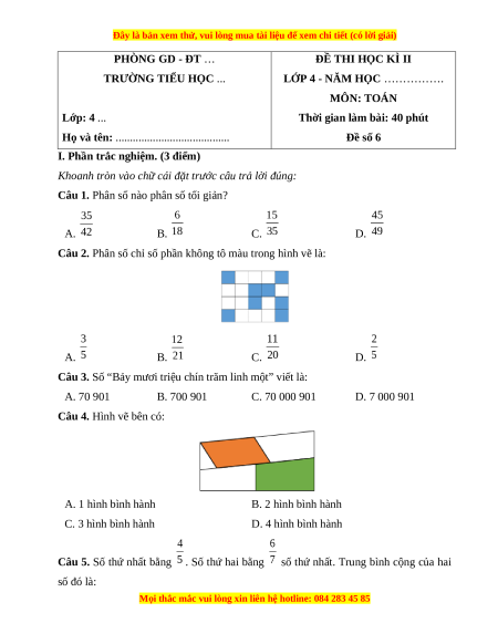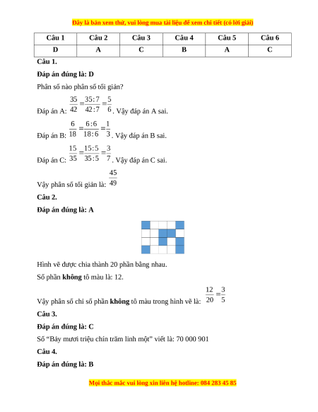 Câu 1. Phân số nào phân số tối giản? A. B. C. D.