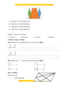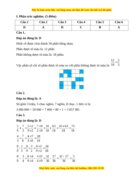 Câu 1. Phân số chỉ số phần được tô màu so với phần không được tô màu là: A. B. C. D.