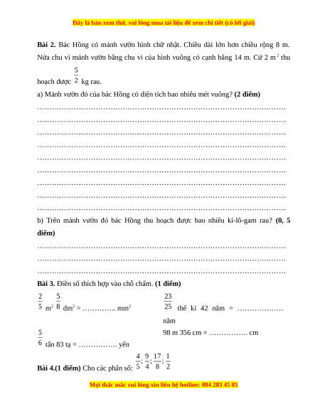 Bài 4.(1 điểm) Cho các phân số: