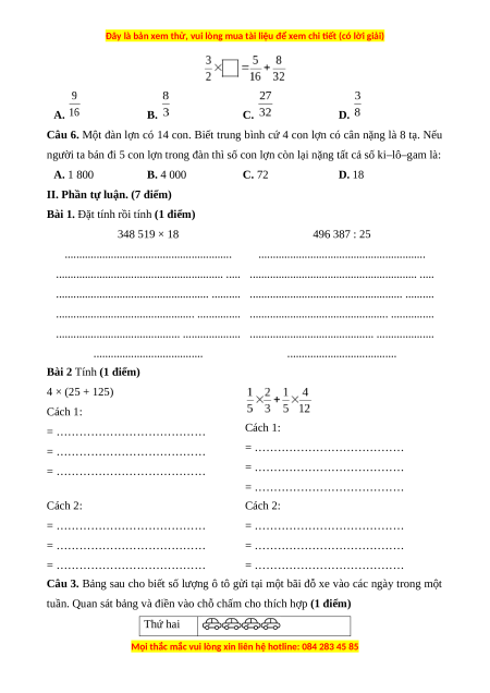 Bài 1. Đặt tính rồi tính (1 điểm) 348 519 × 18 496 387 : 25