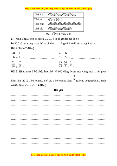 b) Số ô tô gửi trong ngày thứ tư chiếm ....... tổng số ô tô đã gửi trong 5 ngày.
