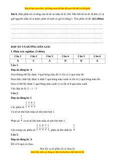 Câu 1. Trong một hộp có 2 quả bóng đỏ và 8 quả bóng xanh có kích thước giống