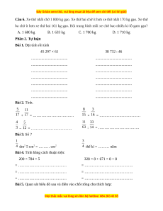Câu 6. Xe thứ nhất chở 1 800 kg gạo. Xe thứ hai chở ít hơn xe thứ nhất 170 kg gạo. Xe thứ