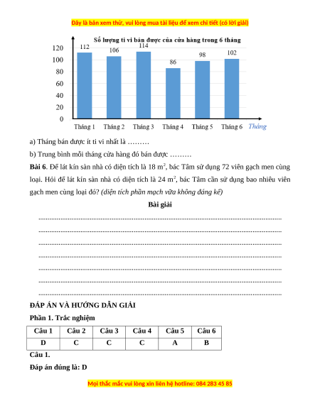 Bài 6. Để lát kín sàn nhà có diện tích là 18 m2, bác Tâm sử dụng 72 viên gạch men cùng