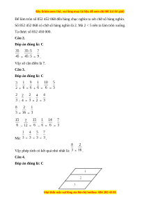Câu 1. Số 852 452 068 làm tròn đến hàng chục nghìn ta được số: A. 852 500 000 B. 852 400 000 C. 852 460 000 D. 852 450 000