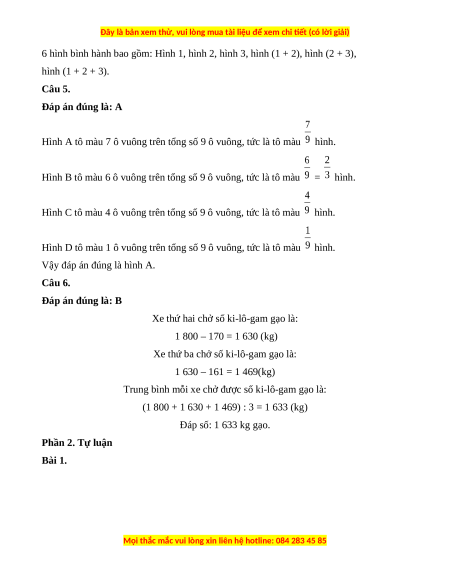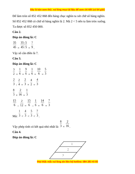 Vậy số cần điền là 7. Câu 3. Đáp án đúng là: C + = + = = : = × = × = – = – = = Mà: < < < .