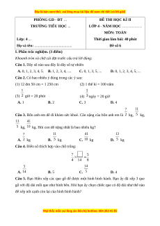 LỚP 4 - NĂM HỌC ……………. MÔN: TOÁN Lớp: 4 ...
