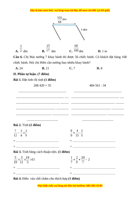 Câu 6. Chị Mai nướng 7 khay bánh thì được 56 chiếc bánh. Có khách đặt hàng 168