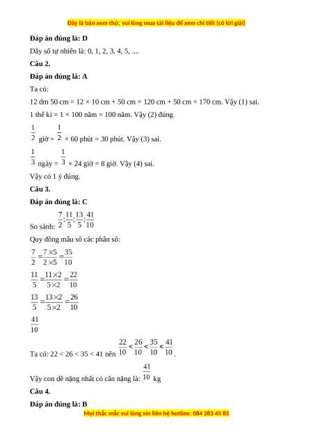 Dãy số tự nhiên là: 0, 1, 2, 3, 4, 5, .... Câu 2. Đáp án đúng là: A Ta có: