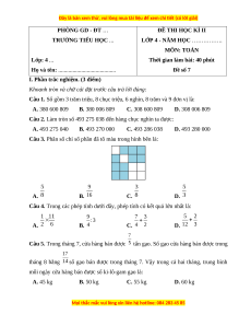 LỚP 4 - NĂM HỌC ……………. MÔN: TOÁN Lớp: 4 ...