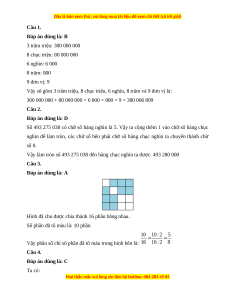 Vậy làm tròn số 493 275 038 đến hàng chục nghìn ta được: 493 280 000 Câu 3. Đáp án đúng là: A