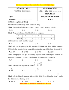 LỚP 4 - NĂM HỌC ……………. MÔN: TOÁN Lớp: 4 ...