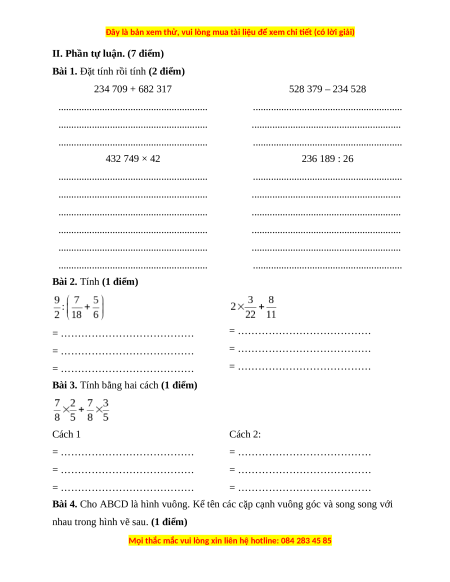 Bài 3. Tính bằng hai cách (1 điểm) Cách 1 Cách 2: