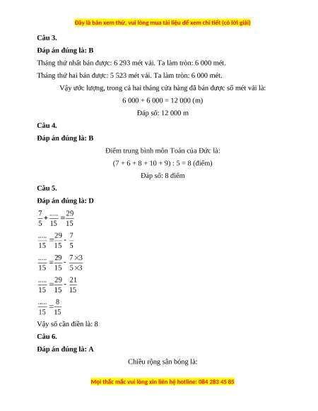 Câu 3. Một cửa hàng tháng thứ nhất bán được 6 293 mét vải, tháng thứ hai bán được