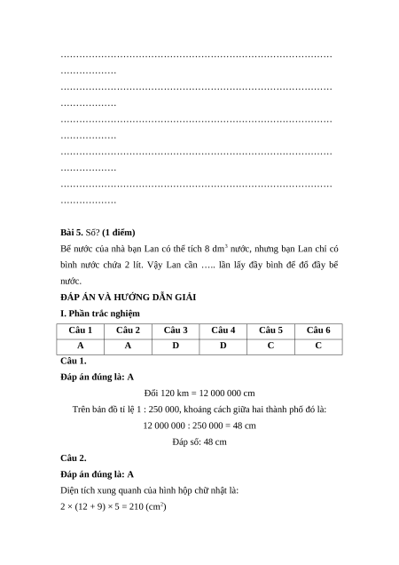 120 km. Trên bản đồ tỉ lệ 1 : 250 000, khoảng cách giữa hai thành phố đó là: (0,5 điểm) A. 48 cm B. 30 cm C. 4,8 cm D. 12 cm