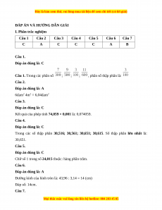 Câu 5. Chữ số 1 trong số 24,015 thuộc: A. Hàng đơn vị B. Hàng phần mười C. Hàng phần trăm D. Hàng phần nghìn