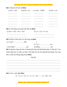 Bài 2. Tính bằng cách thuận tiện nhất: (1 điểm)