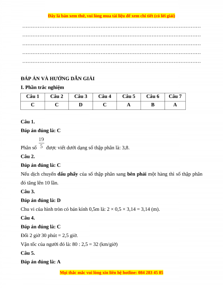 Đây là bản xem thử, vui lòng mua tài liệu để xem chi tiết (có lời giải)
