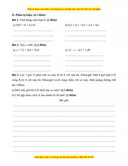 Đây là bản xem thử, vui lòng mua tài liệu để xem chi tiết (có lời giải)