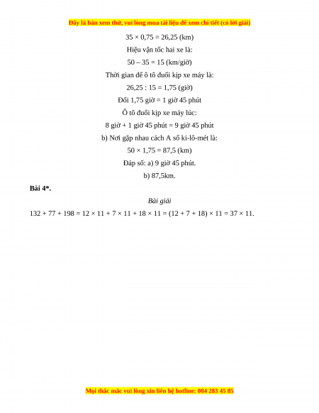 Bài 3. Lúc 7 giờ 15 phút một xe máy đi từ A với vận tốc 35km/giờ. Đến 8 giờ một ô tô
