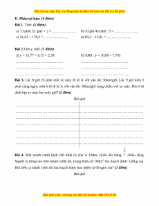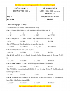 Đề thi cuối kì 2 Toán lớp 5 năm 2023 (Đề 17)