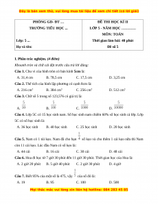Đề thi cuối kì 2 Toán lớp 5 năm 2023 (Đề 5)