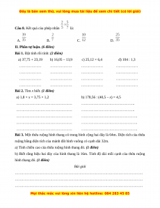 Bài 1. Đặt tính rồi tính: (2 điểm) a) 37,75 + 23,19 b) 16,05 – 13,9 c) 25,12 × 6,4 d) 104 : 1,3 ……………… ……………… ……………… ……………… ……………… ……………… ……………… ……………… ……………… ……………… ……………… ……………… ……………… ……………… ……………… ………………