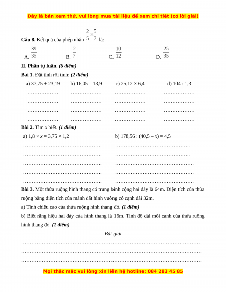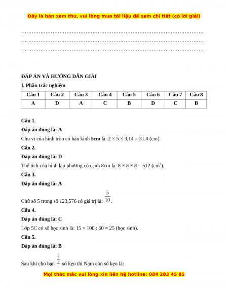 Đây là bản xem thử, vui lòng mua tài liệu để xem chi tiết (có lời giải)