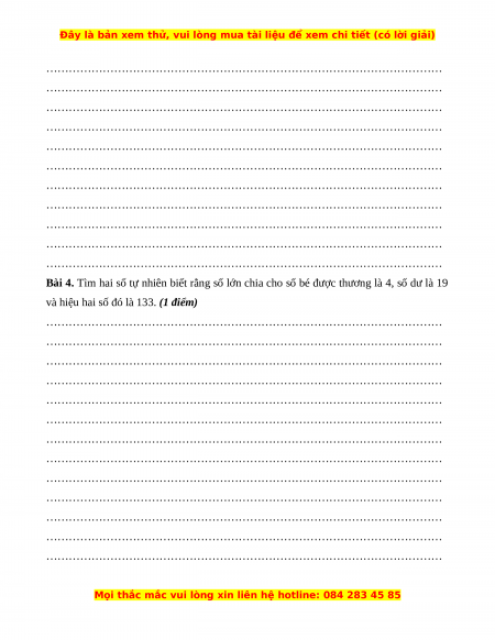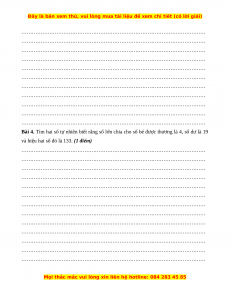 Bài 4. Tìm hai số tự nhiên biết rằng số lớn chia cho số bé được thương là 4, số dư là 19