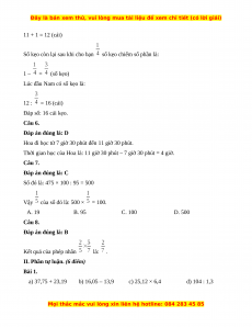 Câu 6. Hoa đi học từ 7 giờ 30 phút đến 11 giờ 30 phút. Thời gian học của Hoa là: A. 2 giờ 20 phút B. 5 giờ 40 phút C. 2 giờ 30 phút D. 4 giờ