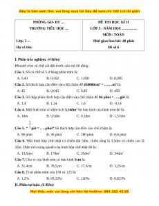 Đề thi cuối kì 2 Toán lớp 5 năm 2023 (Đề 6)