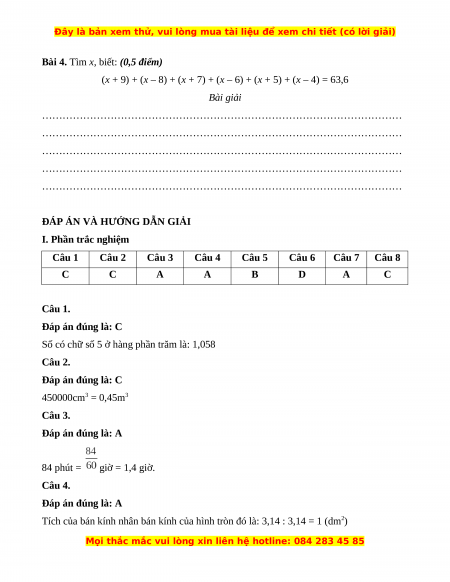 Đây là bản xem thử, vui lòng mua tài liệu để xem chi tiết (có lời giải)