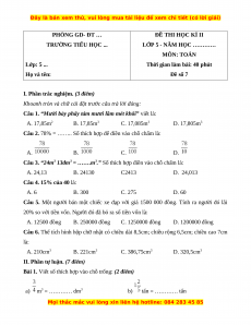 LỚP 5 - NĂM HỌC ………… MÔN: TOÁN Lớp: 5 ...
