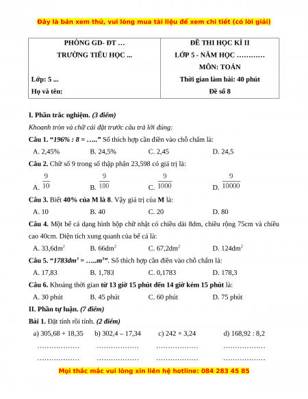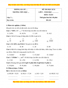 Đề thi cuối kì 2 Toán lớp 5 năm 2023 (Đề 8)