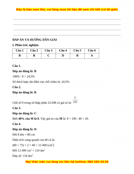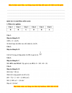 I. Phần trắc nghiệm Câu 1 Câu 2 Câu 3 Câu 4 Câu 5 Câu 6 B B C D B A Câu 1. Đáp án đúng là: B 196% : 8 = 24,5%