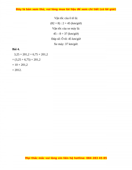 Bài 4. Tính bằng cách thuận tiện nhất: (1 điểm) 3,25 × 201,2 + 6,75 × 201,2